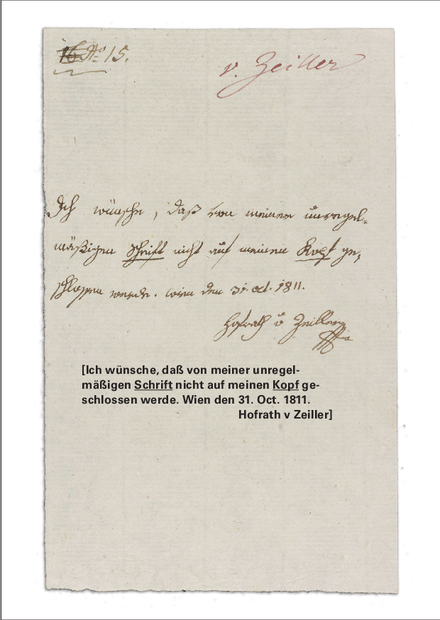 Als Übernahme aus dem Goethe- und Schiller-Archiv (Weimar) zeigt das Freie Deutsche Hochstift ausgewählte Stücke aus Goethes Autographensammlung. Sie stammen von Achim von Arnim, Ludwig van Beethoven, Gottfried August Bürger, Carl Theodor von Dalberg, Denis Diderot, Friedrich de la Motte Fouqué, Jacob Grimm, Johann Georg Hamann, Immanuel Kant, Heinrich von Kleist, Sophie von La Roche, Moses Mendelssohn, Clemens Wenzel Lothar Fürst von Metternich, Wolfgang Amadeus Mozart, Napoleon, Philipp Otto Runge, Friedrich von Schiller, Walter Scott und Franz Alois Edler von Zeiller.