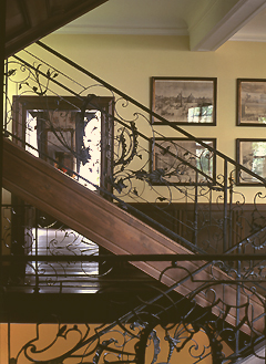 Stairs with wrought-iron banisters