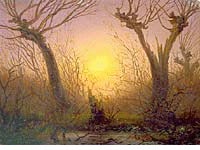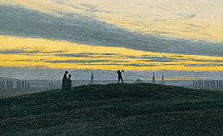 Goethe's feelings about Romantic art are ambivalent. This is seen in his attitude to Caspar David Friedrich, fluctuating between enthusiasm and disapproval. Three atmospheric landscapes by Friedrich, possibly the most famous of the Romantic painters, can be seen: "The Evening Star", "Swans in the Reeds" and "Willow Bush under a Setting Sun".